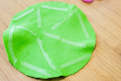 フェルトに両面テープを張り、中皿に貼り付けます。両面テープはプラスティック皿には簡単に塗布されないため、テープをフェルトに直接貼り付けます。