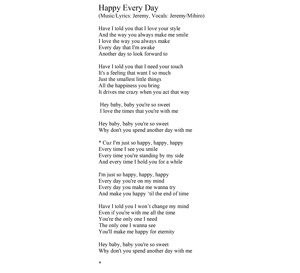 You can listen to the English version and read the lyrics below. For the Japanese version, check out this link. We are also working on music videos for both the English and Japanese versions, so please check back soon. We hope that hearing these songs makes you happy every day!