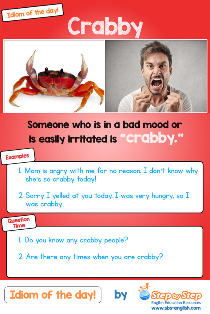 Try to use today’s English idiom, Crabby, in your next conversation!
